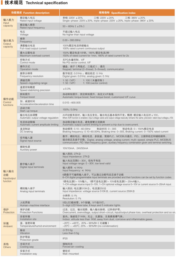 ◎ 輸入和輸出缺相、輸出短路保護等超過(guò)20種保護;